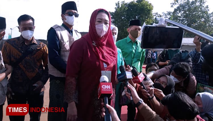 TIMES Samarinda/Putri Abdurrahman Wahid (Gus Dur) Yeny Wahid saat diwawancarai oleh awak media. (FOTO: Moh Ramli/TIMES Indonesia)