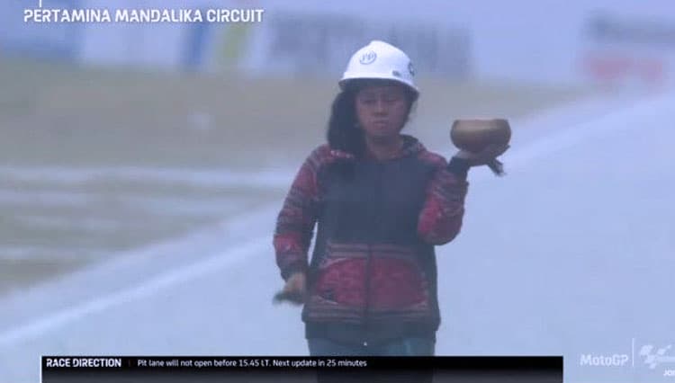 TIMES Samarinda/Raden Rara Isti Wulandari, sang pawang hujan saat Sirkuit Mandalika, Lombok Tengah, NTB, Minggu (20/3/2022) (FOTO: t-2.tstatic.net)